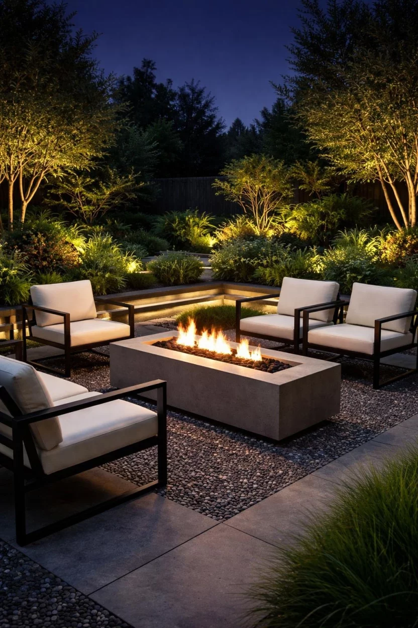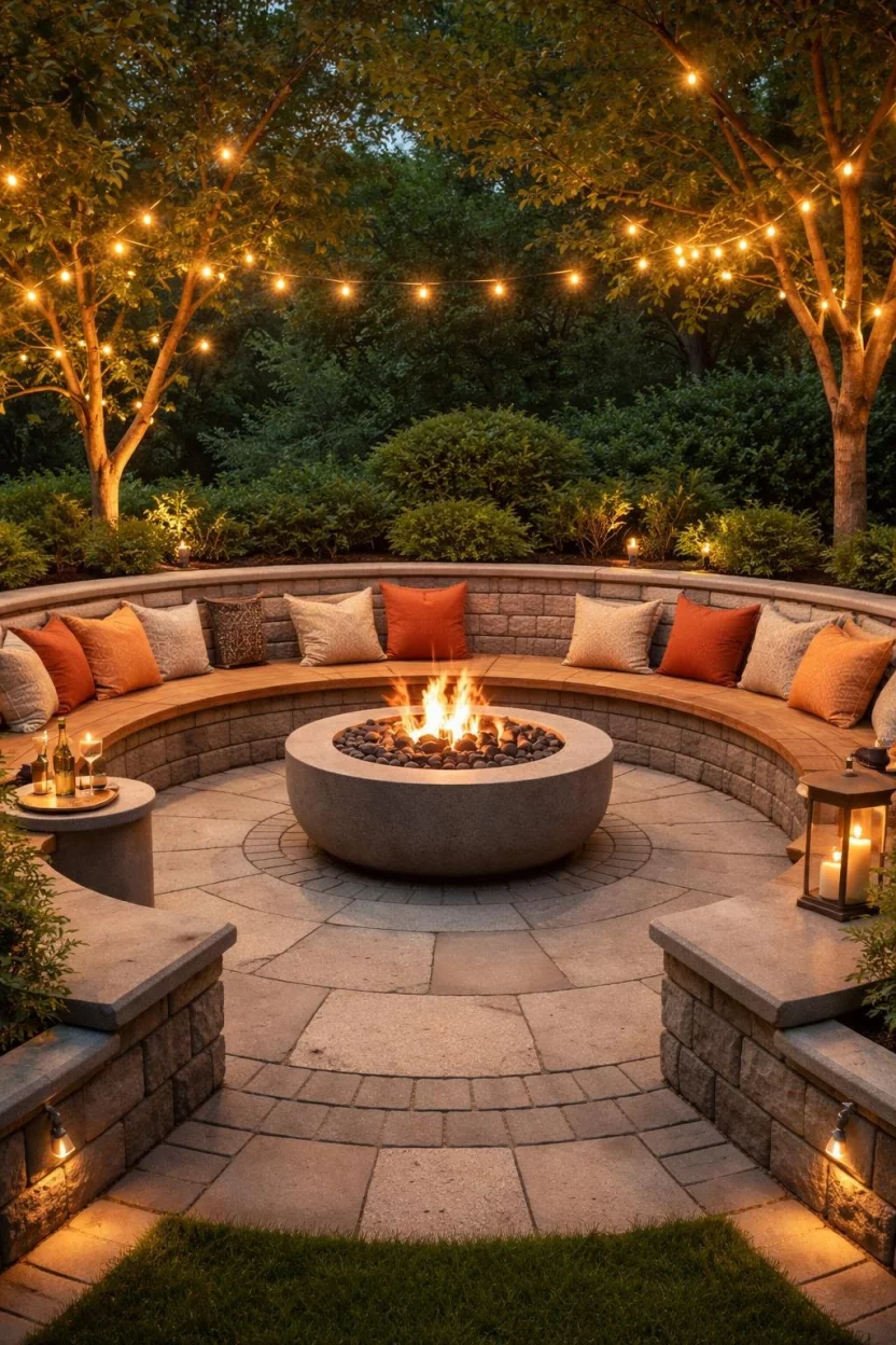 This design works exceptionally well in corners, turning an unused edge of the yard into a warm and cozy destination for long nights.