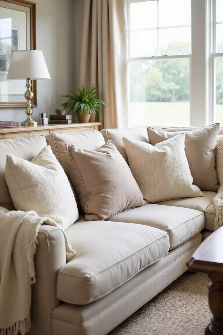 Beige furniture provides a calm foundation, allowing you to easily change accent pieces later.