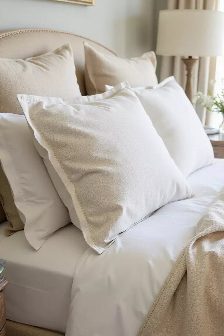 Combine crisp cotton sheets, soft linen duvets, and chunky knit throws.