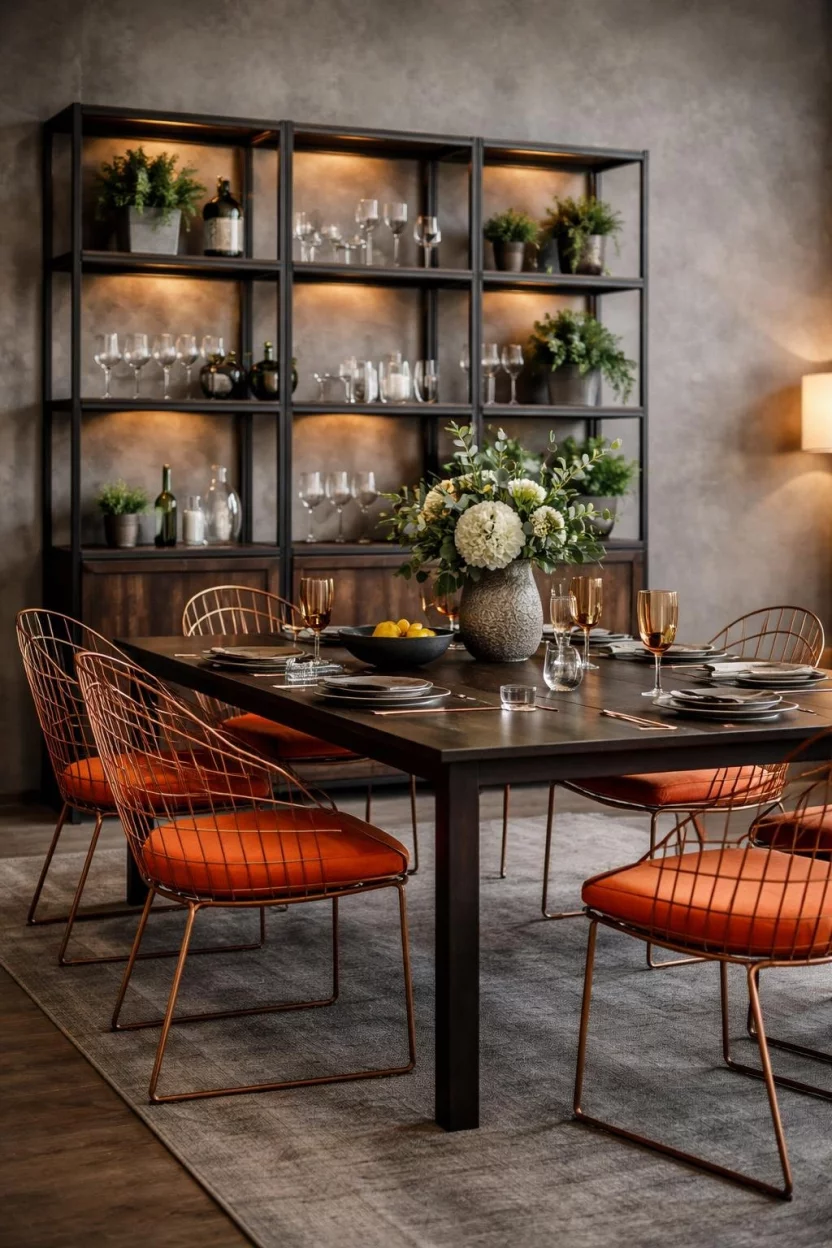 This dining room feels like a high-end penthouse where every piece of furniture has a very important job to do.