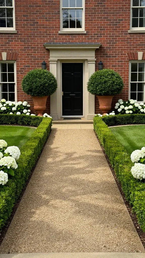 Imagine walking up to a house where two identical Boxwood shrubs sit in matching stone planters on either side of the front door. This mirrored look creates an immediate sense of order and makes even a small cottage feel like a grand estate.