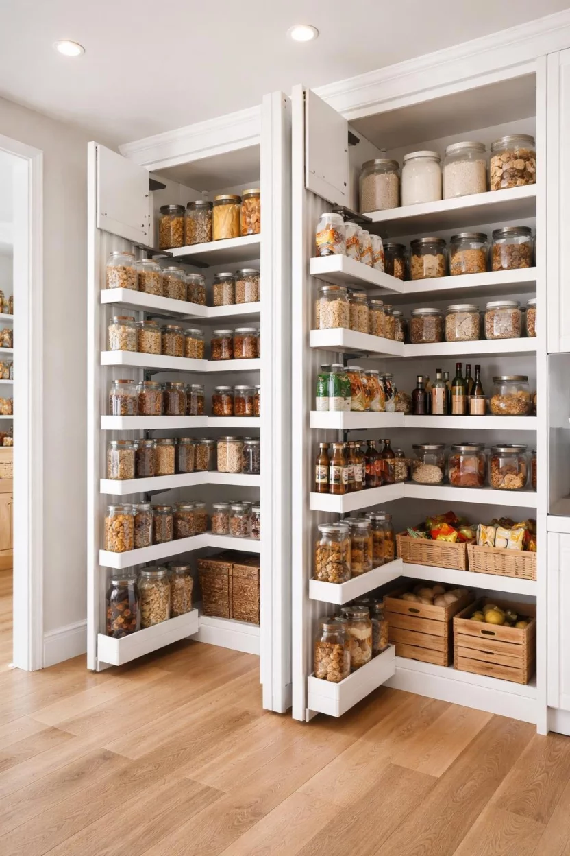 These rotating carousels maximize awkward corners and keep your shelves looking organized.