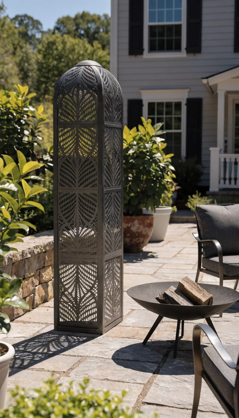 Metal screens transform a boring patio into a modern art gallery while keeping the person next door from watching you snooze.