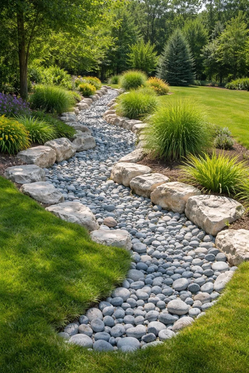 Dry creek beds solve drainage issues while looking incredibly intentional.