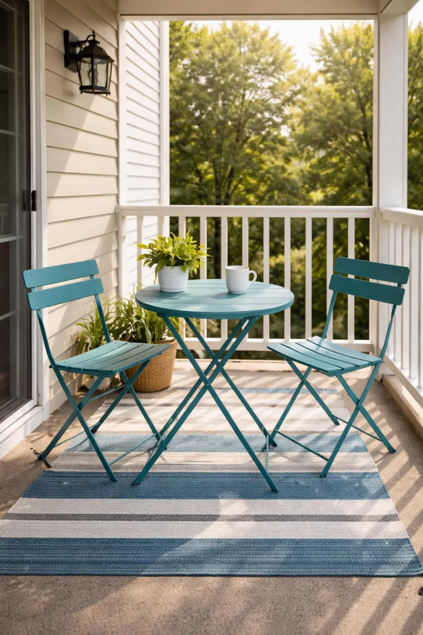 A rug anchors your furniture and makes the balcony feel like a true extension of your living room.