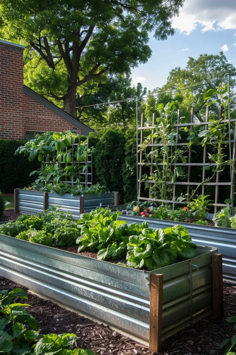 Consider using raised beds for your garden to improve soil drainage and control. Metal raised beds with trellises can support a variety of vegetables and climbing plants.