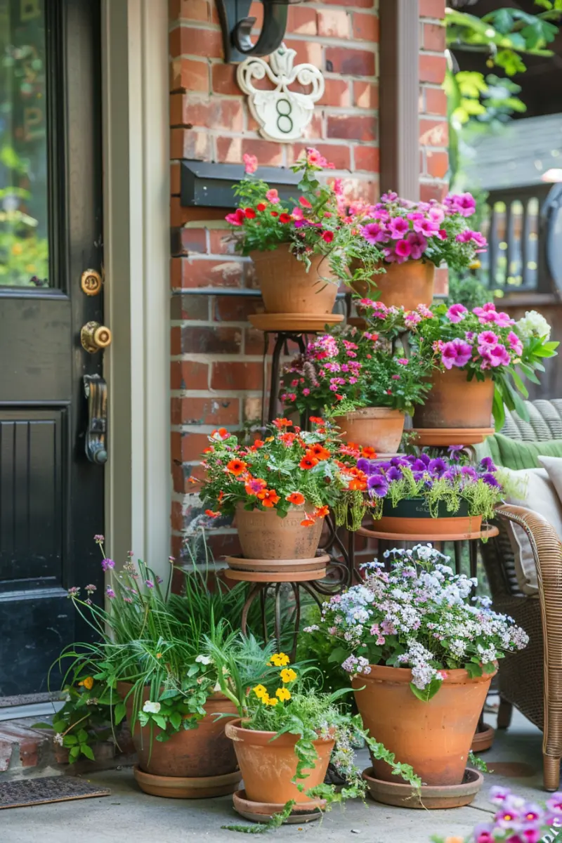 Use terra-cotta pots to add a rustic charm to your garden or porch. Arrange them at varying heights to create a dynamic display of colorful flowers and greenery.