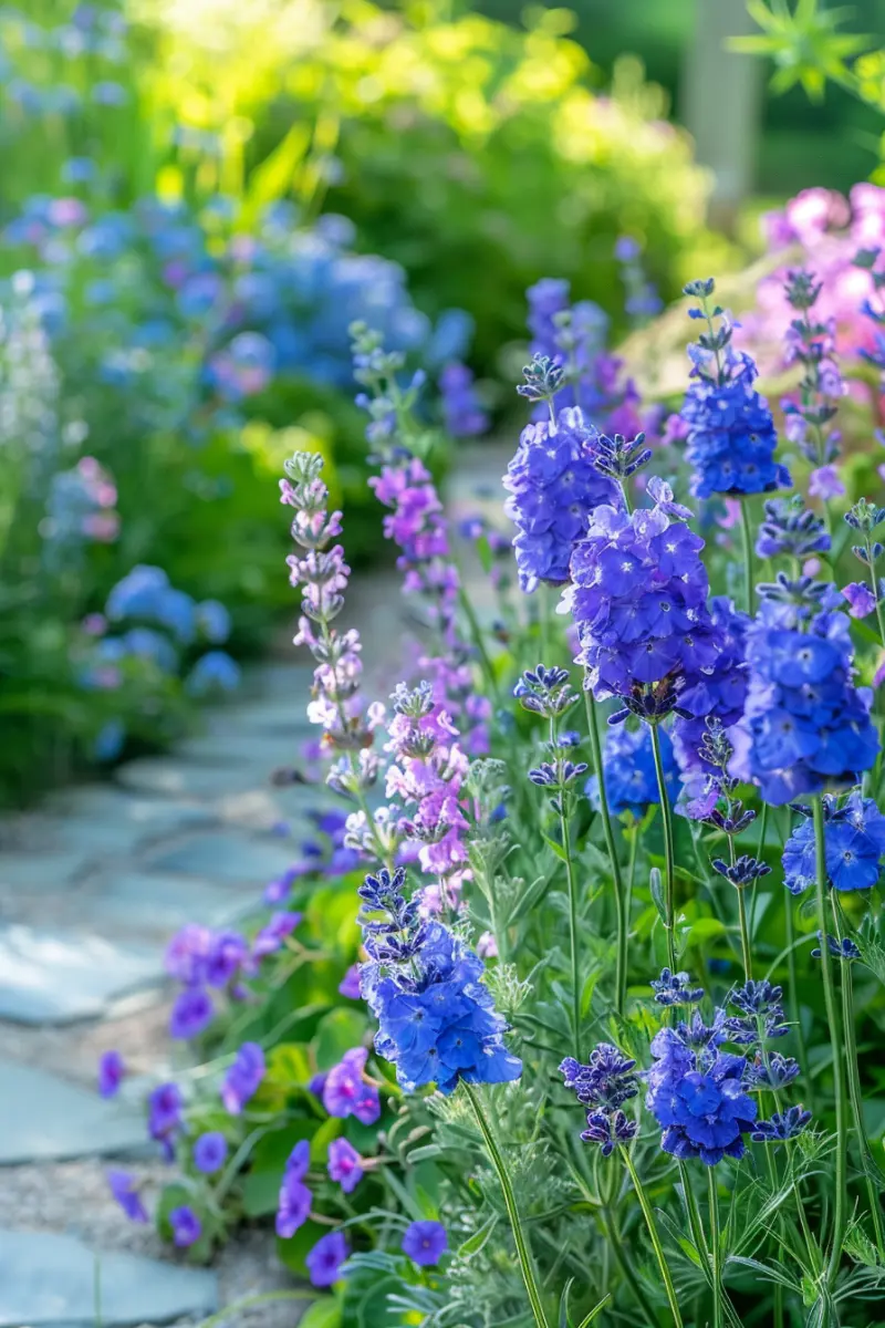 Add a calming ambiance to your garden by incorporating a variety of blue and purple flowers.