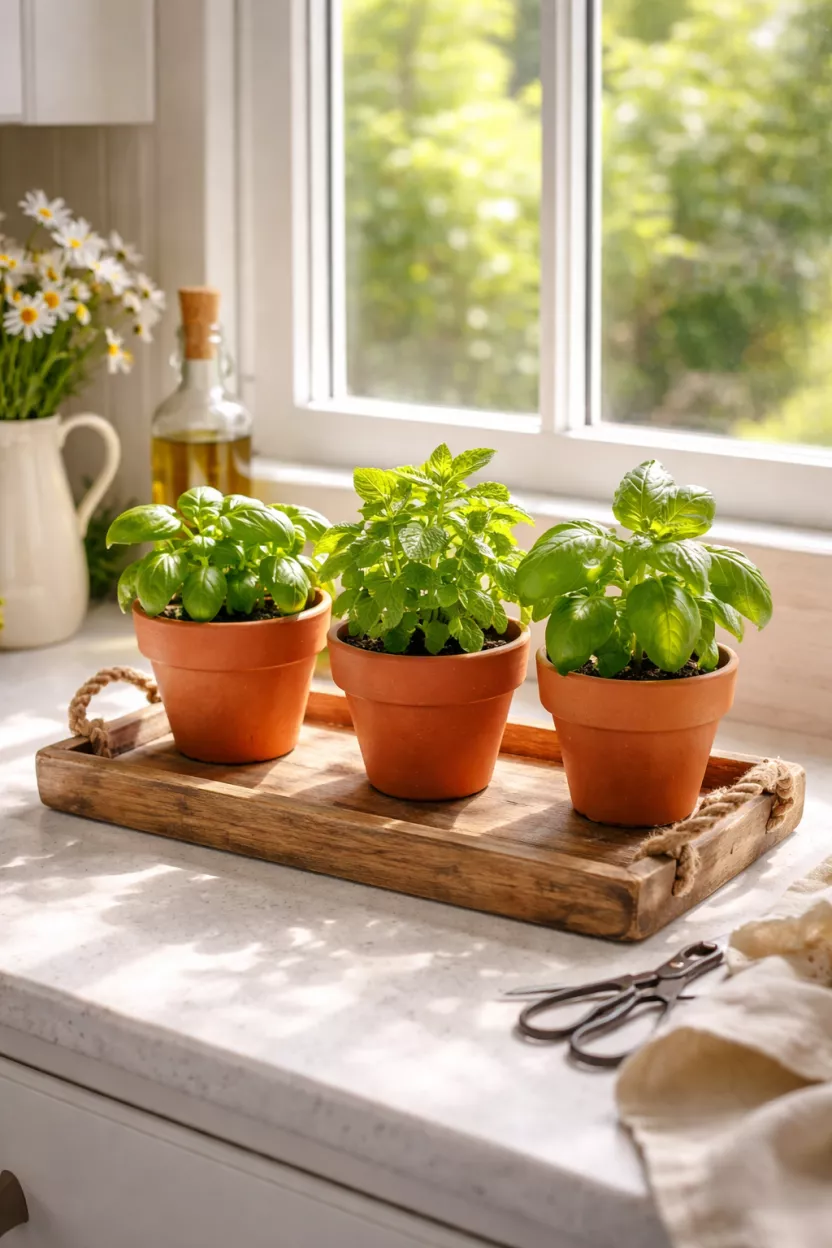 A windowsill garden adds immediate life to your kitchen and saves you five dollars every time you need a sprig of basil.