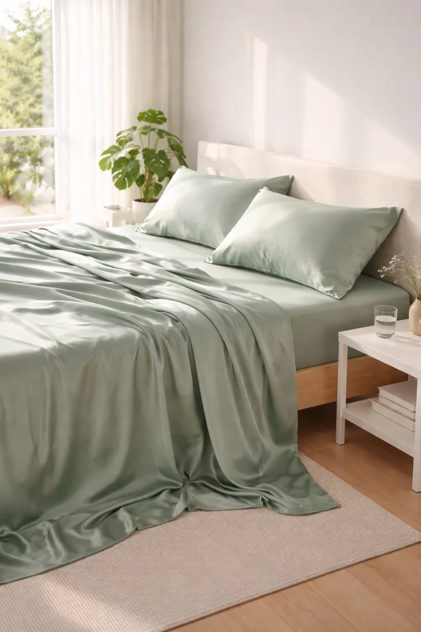 Cooling Eucalyptus Silk Bedding In Sage Green