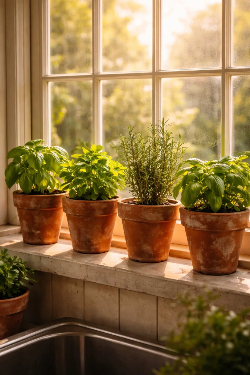 Terracotta Herb Garden Windowsill